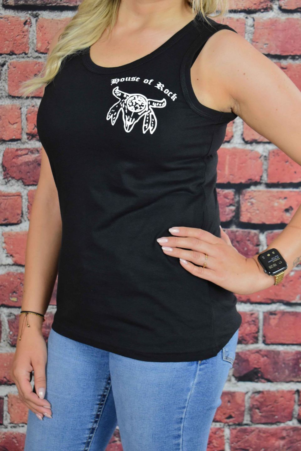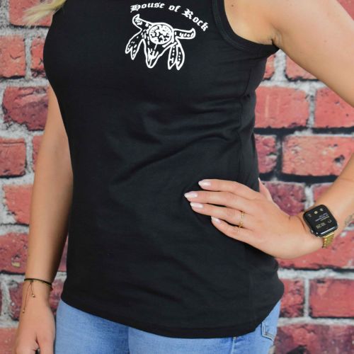 Unser House of Rock Tank Top ist bei den Damen sehr beliebt. Die hochwertige 100% Ringspinn-Baumwolle mit dem eingefassten Ripp-Kragen sorgen für einen angenehmenen Tragekomfort. Der Schnitt des Tops sorgt für eine feminine wohlfühlende Passform. (Waschbar 40° C)
